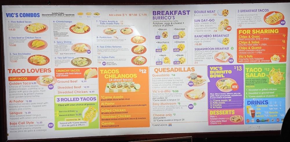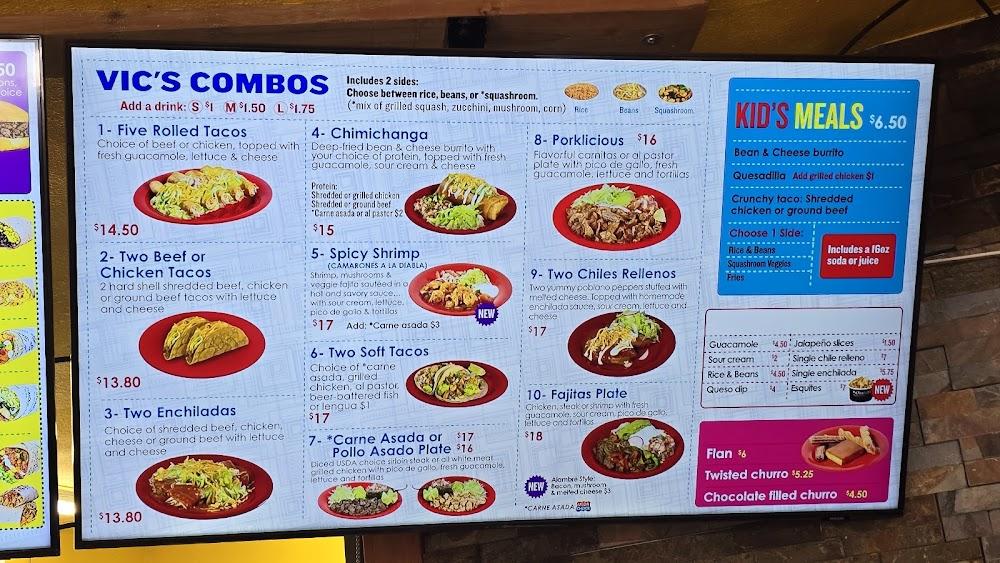 The menu at Victorico's showcases a diverse array of Mexican dishes. Burritos are a highlight, with options like the breakfast burrito and surf and turf burrito attracting attention. Tacos, enchiladas, and fresh salads round out the offerings, allowing for a mix of traditional and unique flavors. For sharing, try the chips with salsa or guacamole. Desserts like churros or flan provide a sweet finish to your meal. Prices are reasonable, averaging about $10 per dish, making it an accessible dining option for everyone. From vegetarian to meat-heavy plates, there’s something for every palate.